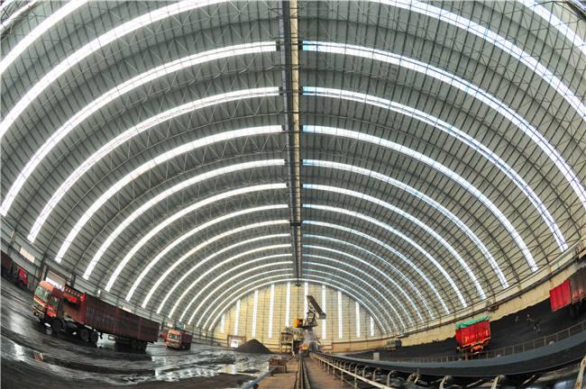 堆场料场封闭式主体结构为新型的钢侯马网架结构,维修结构为钢结构侯马不锈钢板和纤维增强塑料灯具,其外形以侯马网架式和平板为主,连接柱侯马施工自由,设置喷雾自动喷水系统,从而可以实现棚内所有物料的覆盖,减少物料在运输过程中的损耗,起到防尘的作用,减少工厂关闭后的二氧化硫排放量,50mg/m3颗粒排放量小于10mg/m3,非常适合低能耗。低闭库自动感应反应对库存轮胎进行清洁,确保轮胎不受道路污染;封闭的储存区可从源头控制粉尘污染,控制无序排放。